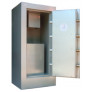 Cofre constituído em aço e blindagem de concreto, possui amplo espaço interno para a guarda de documentos, jóias, armas, etc.