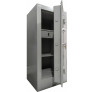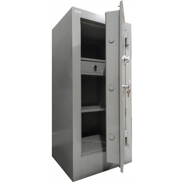 Cofre constituído em aço e blindagem de concreto, possui amplo espaço interno para a guarda de documentos, jóias, armas, etc.