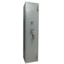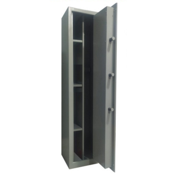 Cofre constituído em aço modelo armário, não possui blindagem de concreto, possui amplo espaço interno para a guarda de armas longas e curtas, munições, documentos, jóias, etc.