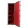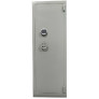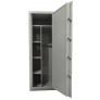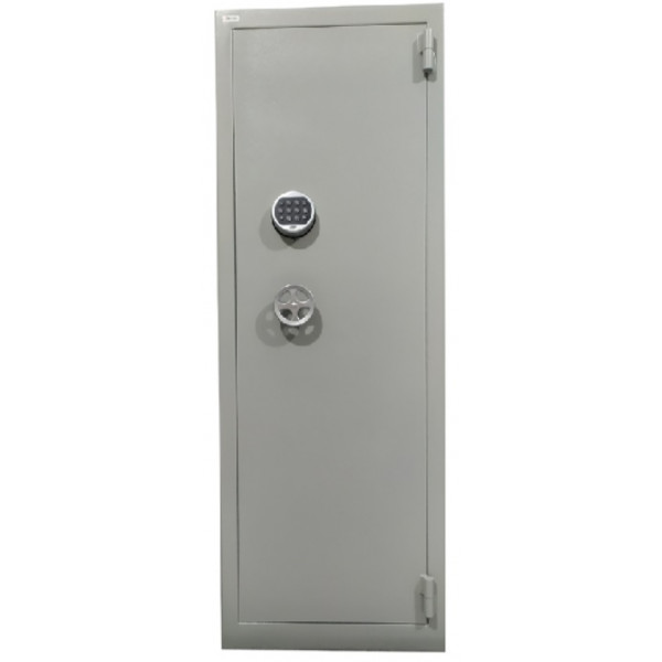 Cofre constituído em aço modelo armário, não possui blindagem de concreto, possui amplo espaço interno para a guarda de armas longas e curtas, munições, documentos, jóias, etc.
