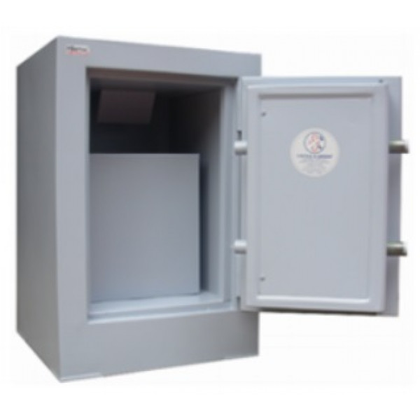 Cofre constituído em aço e blindagem de concreto, possui amplo espaço interno para a guarda de documentos, jóias, armas, etc.