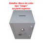 Possui 1 boca de lobo medindo 12cm x 2cm de espessura para passagem de envelopes e dinheiro.