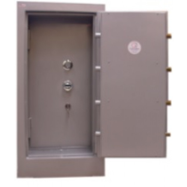 Cofre constituído em aço e blindagem de concreto, possui amplo espaço interno para a guarda de documentos, jóias, armas, etc.