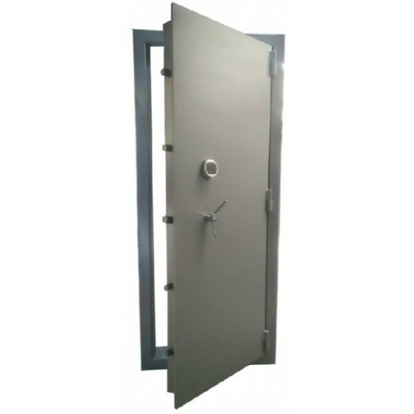 Porta e batente constituídos em aço e blindagem de concreto, permitindo a criação de ampla sala cofre com espaço interno para a guarda de documentos, jóias, armas, etc.